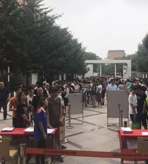 上午八点钟,主会场综合楼前已经有前来参加活动的考生及家长排起了长队。