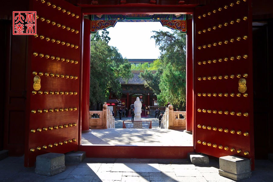 北京孔庙,占地22000多平方米,以大成殿为中心,南北成一条中轴线,三进院落,建筑左右对称,主体建筑依序为先师门、大成门、大成殿、崇圣祠。经历代多次扩建修葺,至民国五年(1916年),才最后竣工。至此,北京孔庙形成现今的规模和布局,成为仅次于山东曲阜孔庙的全国第二大孔庙。