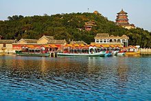 清朝乾隆皇帝继位以前,在北京西郊一带,建起了四座大型皇家园林。乾隆十五年(1750年),乾隆皇帝为孝敬其母孝圣皇后动用448万两百银在这里改建为清漪园,形成了从现清华园到香山长达二十公里的皇家园林区。咸丰十年(1860年),清漪园被英法联军焚毁。光绪十四年(1888年)重建,改称颐和园,作消夏游乐地。光绪二十六年(1900年),颐和园又遭“八国联军”的破坏,珍宝被劫掠一空。清朝灭亡后,颐和园在军阀混战和国民党统治时期,又遭破坏。