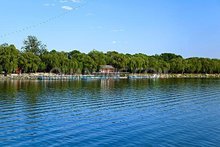 昆明湖是颐和园的主要湖泊,占全园面积的四分之三,约220公顷。南部的前湖区碧波荡漾,西望起伏、北望楼阁成群;湖中有一道西堤,堤上桃柳成行;十七孔桥横卧湖上,湖中3岛上也有形式各异的古典建筑。昆明湖是清代皇家诸园中最大的湖泊,湖中一道长堤──西堤,自西北逶迤向南。西堤及其支堤把湖面划分为三个大小不等的水域,每个水域各有一个湖心岛。这三个岛在湖面上成鼎足而峙的布列,象征着中国古老传说中的东海三神山──蓬莱、方丈、瀛洲。西堤以及堤上的六座桥是有意识地摹仿杭州西湖的苏堤和“苏堤六桥”。西堤一带碧波垂柳,自然景色开阔,园外数里的玉泉山秀丽山形和山顶的玉峰塔影排闼而来,被收摄作为园景的组成部分。从昆明湖上和湖滨西望,园外之景和园内湖山浑然一体,这是中国园林中运用借景手法的杰出范例。湖区建筑主要集中在三个岛上。