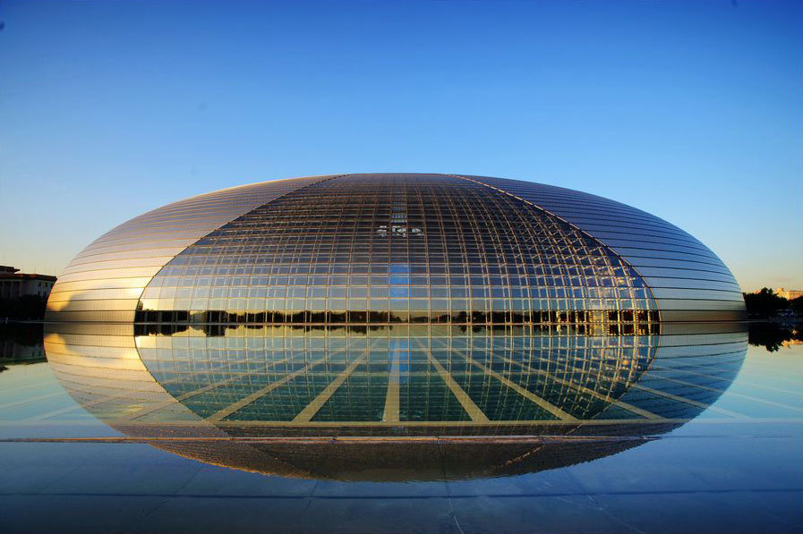 国家大剧院造型新颖、前卫,构思独特,是传统与现代、浪漫与现实的结合。