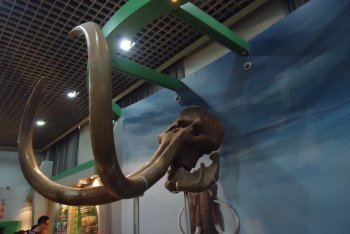在展厅中,观众可以看到阶齿兽的复原图和骨骼标本,它是恐龙绝灭后地球上同期最大的哺乳动物;可以欣赏到庞大的象类家族,包括赫赫有名的高4米长8米的黄河象和铲齿象。观众还可以欣赏到一件十分引人注目的标本,最早的被子植物化石--世界上第一朵花辽宁古果。