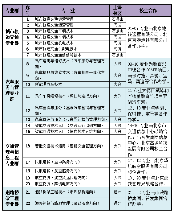 ●城市轨道交通专业群:我们是北京地铁三大公司的主要人才供给学校。